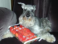 | 2002.12.06 チビちゃんからの クリスマスプレゼント・・ 新しいお友達と♪ サンタさんに変身した とってもかわいいシュナちゃん! |