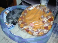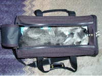 2002.12.14 サムソナイトのキャリーバッグ♪ どこに連れて行ってくれるのかと楽しみにしてたらぁ・・ あれれ、お写真だけなのぉ?! 12kgまでOKで、下には白いボアクッションが・・ このタイプを替えに探した事もあるけど、もう売ってないみたい・・ でもなんか、他にいいのを見つけたらしいわん! |