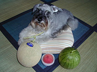 2004.08.14 えへへっ、今日はボクの 11歳4ヶ月のプチバースデー☆ ボクが生まれた地、岡山の白桃と、 ボクサイズのすいかで お祝いしてもらったよ♪ 1年ぶり浴衣見て〜っ(^O^) |