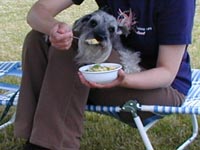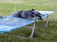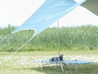 | 2002.04.28 淀川BBQ 大好きなボンボンベッド上は タープのおかげで涼しいワン! |