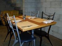 レストランテープル奥の階段の上には ショップがあるワン! |