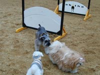 2階で予防接種証明書提出で 写真付メンバースカードをゲット! 早速レストラン横のドッグランへ♪ クンクンクン・・・ |