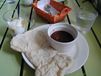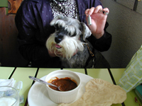 | カレー&ナン&ヨーグルトセット 800yen!! ボーン型のナンの香りに ボク達はクンクンクン(^-^) ヨーグルトはかなり濃厚で トルコアイスクリームみたいに びょ〜んとしてた!! ハチミツとブレンドかな?! とってもおいしいんだって〜っ! えっ、ボク達?・・もらえず!!(>_<) |