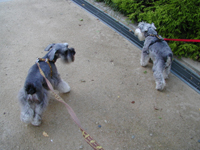| どう、どう、楽しい?! | ここから見るイチョウがきれいんだ♪ この場所って、 ボクのお写真でよく見るでしょ?! ちょっと距離のある2犬(^m^) |