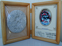 | ティキ手形額・・2001年10月14日 左利きのティキの左前足をペタッ☆ HP開設記念に・・ 実はこの時、ティキは餓死直前で危なかった・・ シーズーのラムおに〜ちゃんとオソロの手形額♪ |