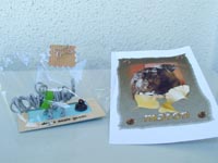 こっちのチョコレートは ピーちゃんの人間のおねーさん、 菜摘ちゃんの手作り〜☆ とっても素敵にラッピングされて 食べるのがもったいないなぁ・・ 菜摘おねーちゃん、ありがとう〜☆ |