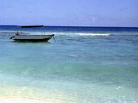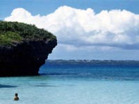 珊瑚礁が隆起して出来た島は貝殻などキメの粗い白い砂で覆われ海のグラデーションが美しく、