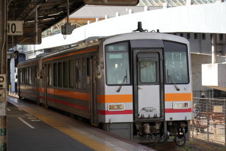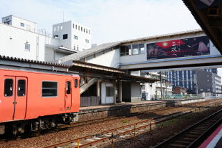 | ツアーは三次駅集合の日帰りでしたので、前日に木次線に乗ることにしました。新幹線で岡山に向かい、伯備線「やくも」で、過去に撮影したポイントを車内から眺めながら山陰本線の宍道駅へ。そして宍道駅から木次線に乗り換え、乗り鉄旅のスタートです。 |