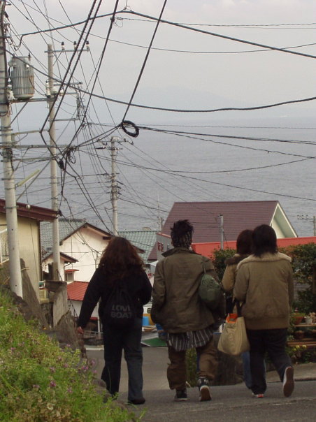 | 山から海へ下る道は景色がとても綺麗。 海から吹く冷たい潮風が哀愁を誘います。 これから別々の道を進む俺達、 皆何を想って歩いてたのかな? |