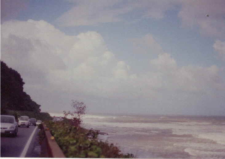 | G君に別れを告げ、向かうは富山経由での金沢! スコールの様な雨が降り続く中、 一瞬雨が止んだ地点があったので迷わず停車。 雄大な日本海を写真に収めました。 入道雲と荒ぶる日本海がマッチしてて、 凄く心地好い海岸線のドライブでした。 |