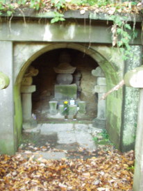 誰もが知っている源頼朝公のお墓。 その上にひっそりと佇むのがこのお方、 政所大江広元公のお墓です…。 頼朝公のお墓に立ち寄られた後、 切り崩しのような坂道を登り、 辿り着くお方が何人おられるか(T-T)。 我々の旅のスタートは、 名所の隠された影からとなりました。 旅行を計画したT氏の心意気は買います。 しかし初っ端からコアな場所へ 連れて来てくれたモノだと、 一同この旅に一物の不安(不満?)を覚えました。 |