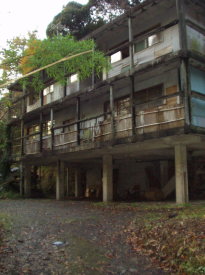 見ただけで身の毛が弥立つ…。 バイオハザードに出てきそうな洋館、 水の滴るトンネル、 およそ楽しいとは程遠いコースを 俺達は超速っで歩き続けました…。 T氏曰く「日が落ちる前に源氏山越えるよ!」 だそうです。すでに夕暮れ時…。 大丈夫かよ、俺? ちなみにこの日は前日の雨で路面最悪。 アスファルトしか歩かないと思っていた俺は、 この時点で靴も、コートもボロボロでした(T-T)。 |