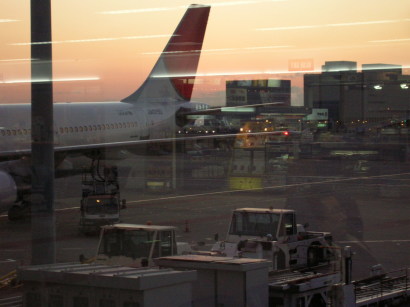 | パソコンから旅の情報を手に入れていた昨年、 今年はもっとアクティブに、良い情報はリアルタイムで! と言う訳で、とっても安かったJALの格安航空券を 大晦日携帯にて確認し、即買い。 元旦の6:50、広島空港へと旅立つ事になりました。 目的はひとつ、行った事のない土地での初詣ッ! アホとしか思えない…けど、楽しい(^-^)。 天気予報では初日の出絶望と言われてたけど、 きちんと見れたよ初日の出in羽田空港。 おめでたい気分を胸に、まずは腹ごしらえ。 |