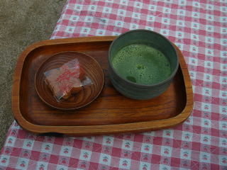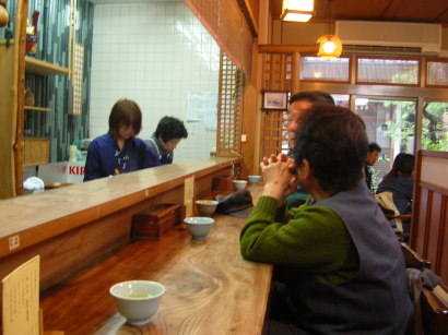 | この時期にまだ落ちてなかった紅葉。 | 茶屋のオヤジに呼び止められ、しばし休憩。 |