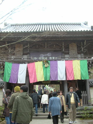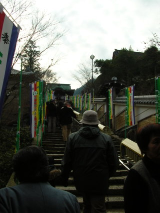 | 行ける所まで山登り、バッグが重い(笑)。 | 横の手すりはお経のカラカラ。 |