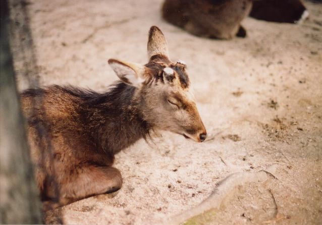 | お昼になれば、鹿も寝る。動いていないと剥製の様。寝顔が可愛い。 | |