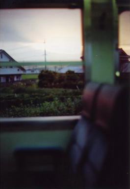 | フェリーが着いて宇野の街を散策。 小さな港町でしたが、フェリーの会社が 3つもあり港町としての活気を感じました。 カメラのキタムラを発見し、 今までの旅の写真を現像。 1時間待つ間に、この後の予定を考えました。 岡山市街に戻ったら、 少し休んで後楽園へ行こう。 独り旅特有の侘しさを感じる夕焼け。 その景色にマッチした音楽、 なんとJR西日本では電車の発着音があのCMのまま! そう、山口百恵のあのイントロなのです! 「昨日今日明日、変わり行く私〜♪」、 やられました。哀愁漂う中ワンマン電車に乗っていざ岡山。 |