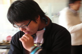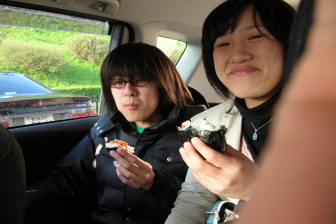 | 前日あまり寝てない俺達。 asa.氏の母上が握ってくれたおにぎりを食べ、 出発前から気持ちがノリノリに。 やっぱ日本人は米だよね、米! |