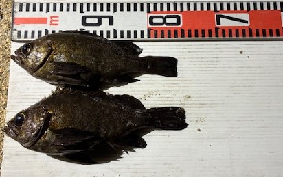 | 半夜便の釣果 萩さん ルアー釣り メバル 〜29cm 2匹 ガシラ 〜約25cm 今日はお連れ様の西さんとご一緒に初ケーソン!! 良型のメバルとガシラが釣れました(^O^)/ 他の方もシーバス3匹GETされていましたよ(^^)v 本日は半夜便にご乗船いただきありがとうございました(*^^*) |